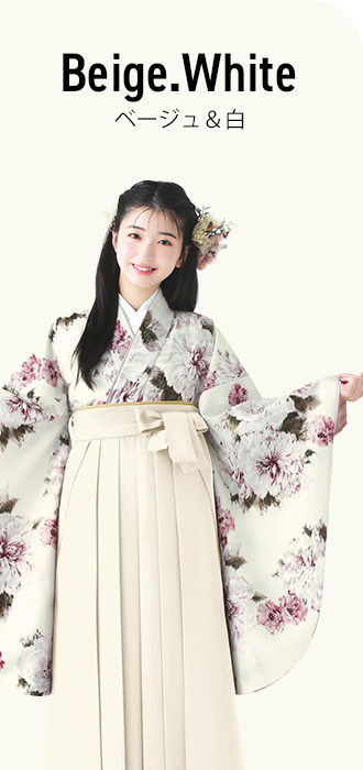小学生 卒業袴 レンタル|ベージュ × ねじり梅柄 C0010|女の子 卒業式 袴 フルセット
