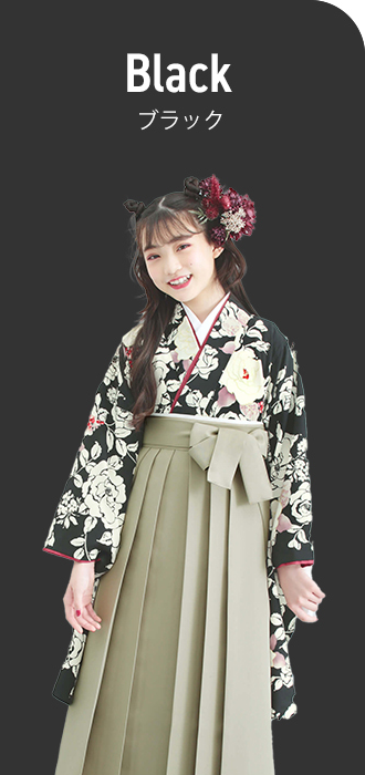 小学生 卒業袴 レンタル|黒 × ねじり梅柄 C0009|女の子 卒業式 袴 フルセット