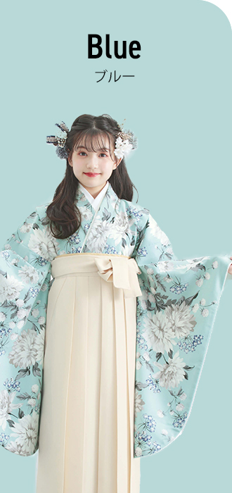 小学生 卒業袴 レンタル|水色 × ダリア柄 C0014|女の子 卒業式 袴 フルセット