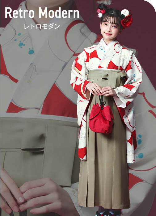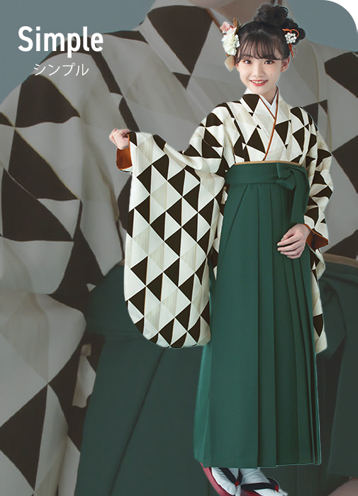 tententenの袴は、ご自宅で簡単に着付けができるオリジナル設計。 140通りの組み合わせから選べるおしゃれなフルレンタルセットを、一律 41,800円(税込)でご用意しました。返却時のクリーニングも不要です。