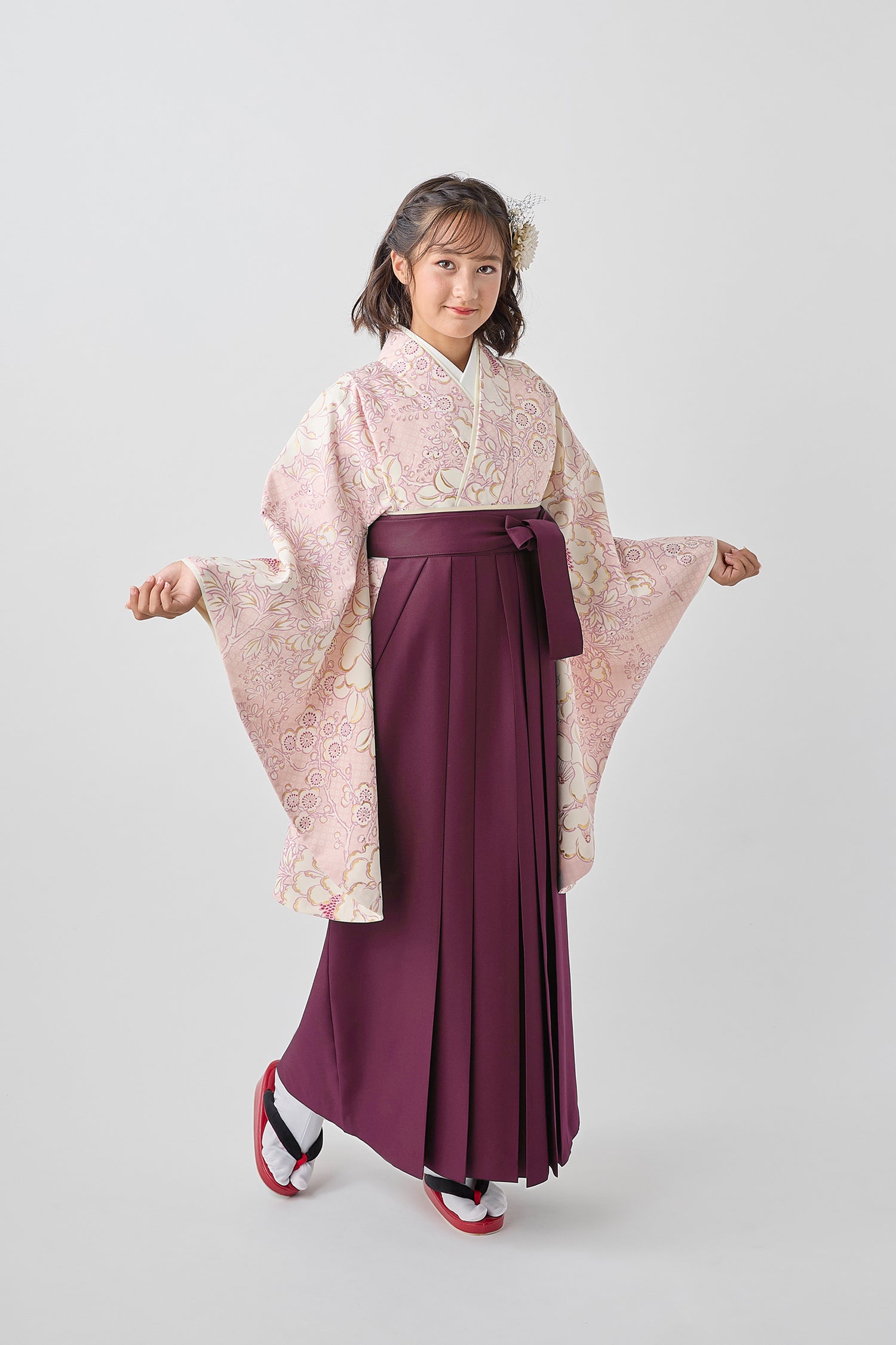 C0031 疋田に華づくし/ピンク 【小学生卒業式袴レンタル】