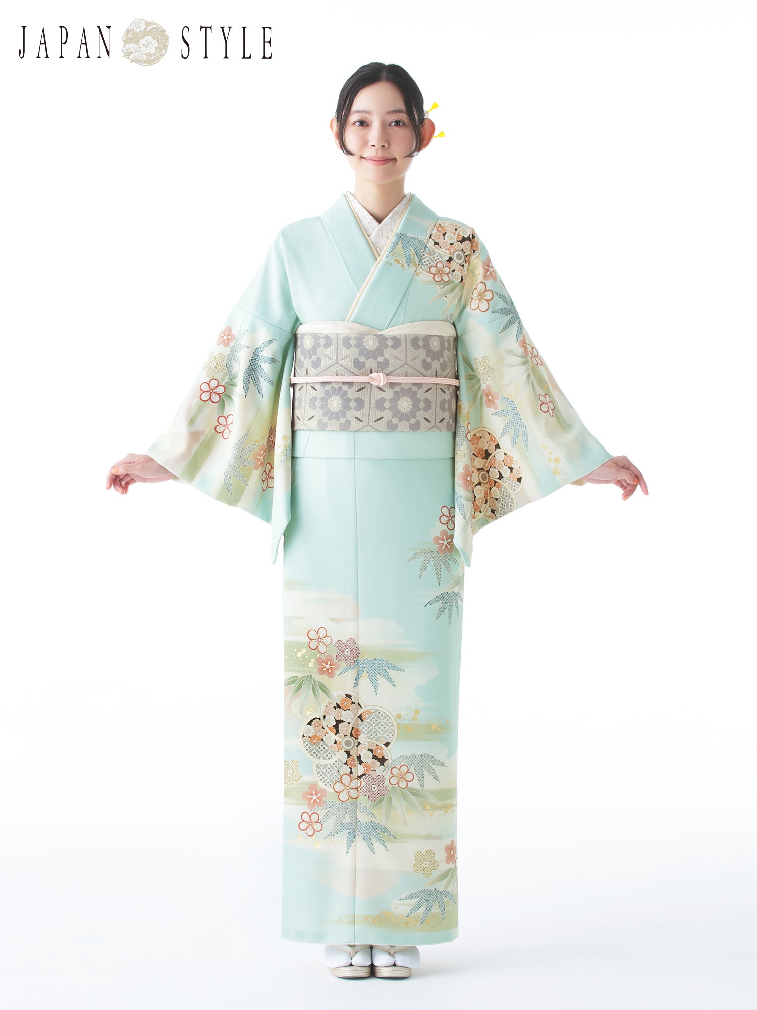 【JAPAN STYLE】やさしい色合いと上品な絵羽柄が魅力の、訪問着レンタル。軽くてシワになりにくく、長時間の着用や移動の多い日も安心です。入学式・卒業式、七五三やお宮参りの付き添い、結婚式や顔合わせなど、母親としてのフォーマルシーンに気軽に取り入れられる一着です。