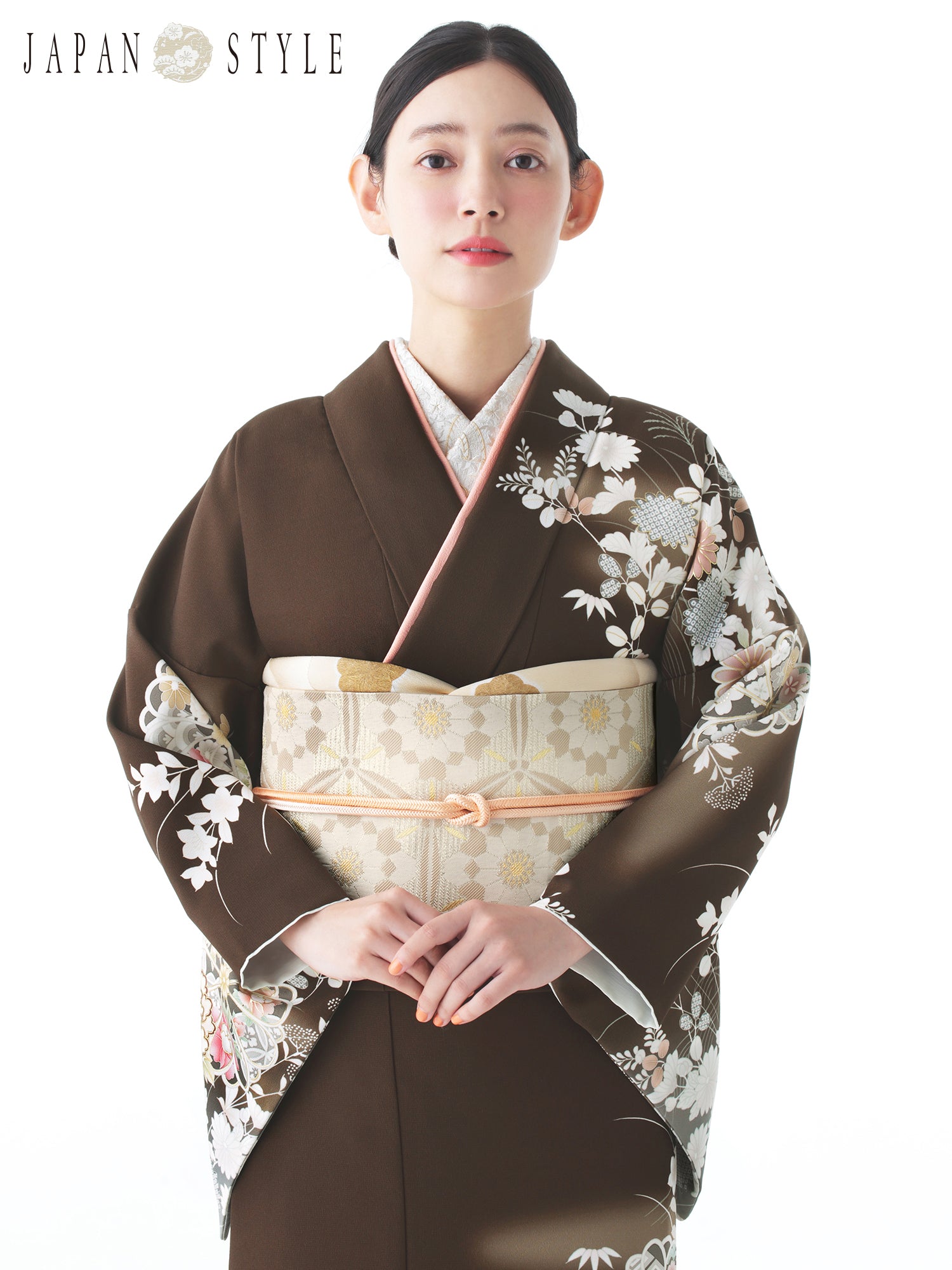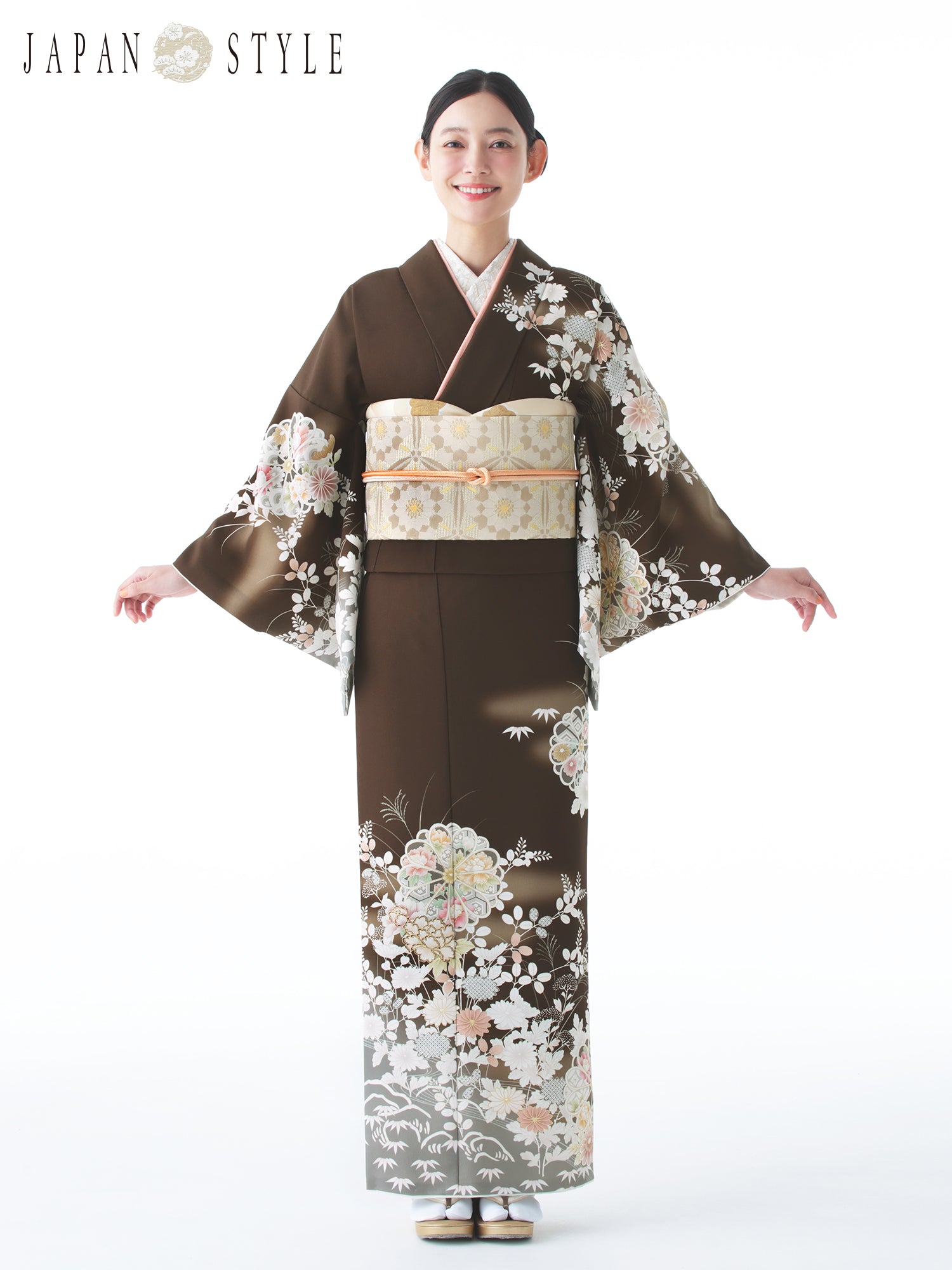 訪問着レンタル|着物・入学式・卒業式 |菊御所解/ブラウン/L0022