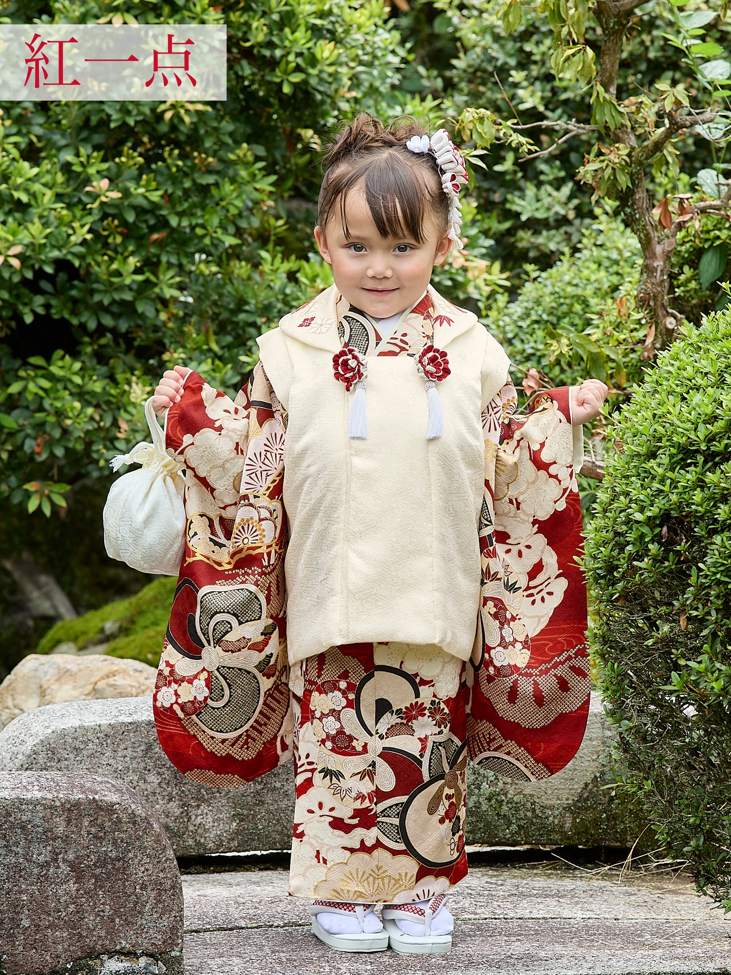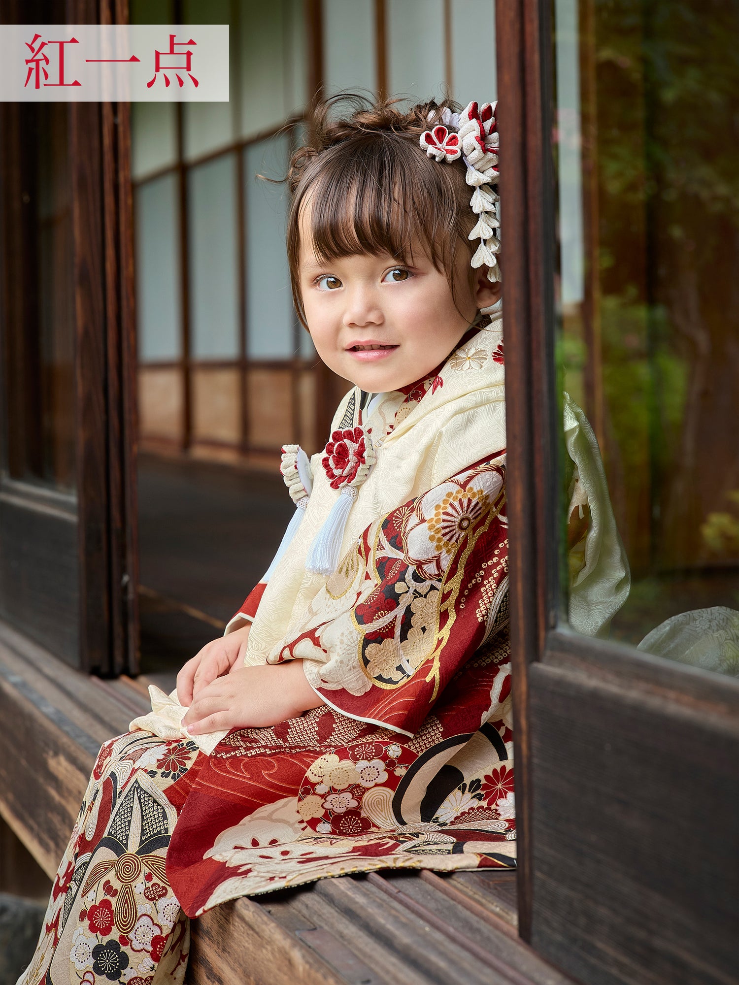 七五三 着物 レンタル 3歳 女の子【紅一点】ねじり梅に橘/赤 S0337