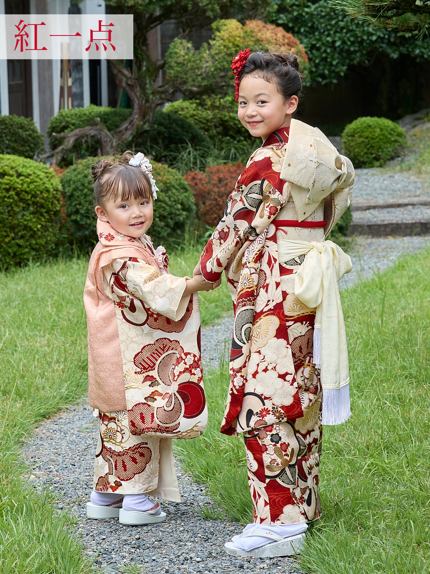 七五三 着物 レンタル 7歳 女の子【紅一点】ねじり梅に橘(赤) S0734