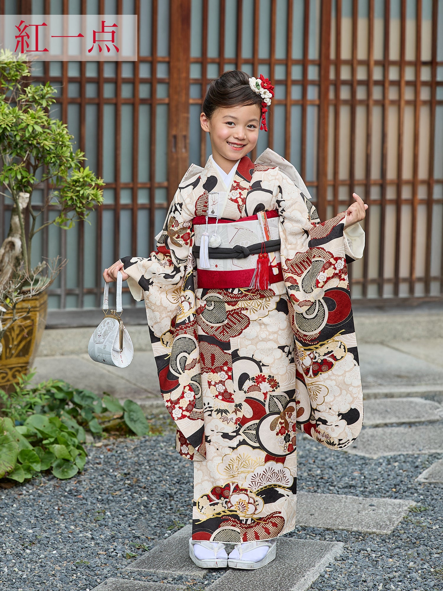 ゆったりレンタルで準備も返却もスムーズ。お参り前後の日程に余裕が持てるため、前撮りやご親族でのお食事会にも安心してご利用いただけます。サイズは7歳向けに調整可能で、着付けしやすく着心地も快適。晴れ舞台にふさわしい、高級感と伝統美を兼ね備えた一着です。